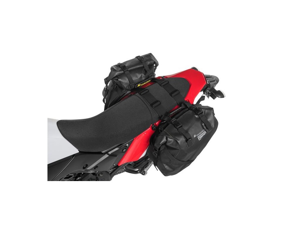 Info: Tašky sa uchytávajú cez sedadlo prostredníctvom popruhov. Nie je potrebný rám, ani nosič. Univerzálne riešenie pre väčšinu ADV motoriek.