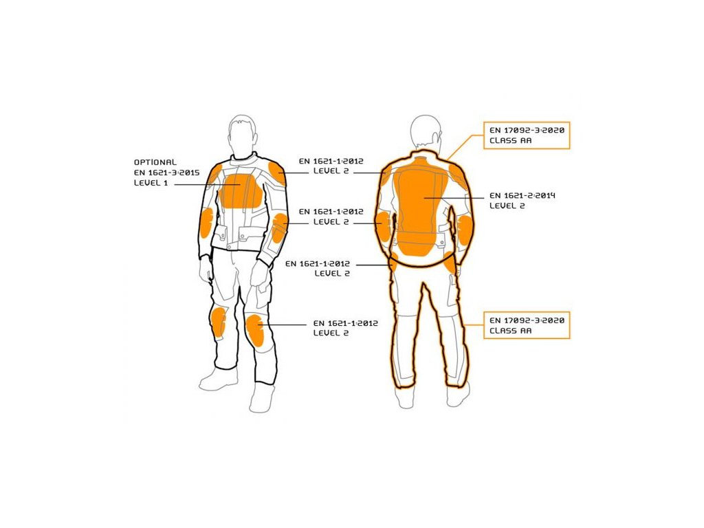 - chrbát (EN 1621-2: 20 14 / B, úroveň 2)